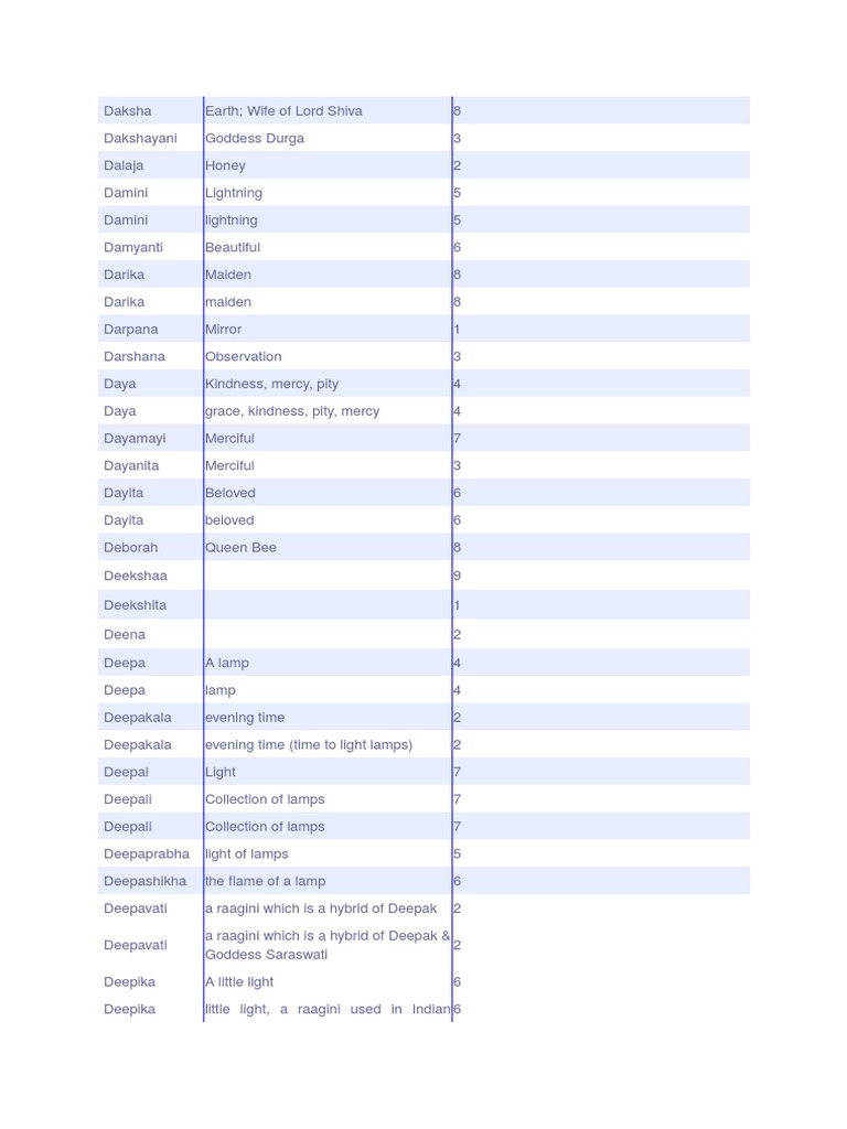 Baby Girl Names Devi Hindu Mythology - D dependable, on you i can rely.
