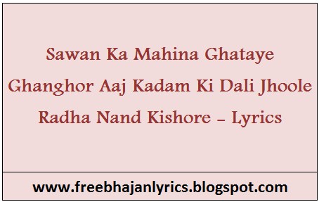 Sawan Ka Mahina Ghataye Ghanghor Aaj Kadam Ki Dali Jhoole Radha Nand Kishore Lyrics Free Bhajan Lyrics - Jaga rahe ghanghor features sohrab modi, lalita pawar, ajit, jeevan, jagirdar.