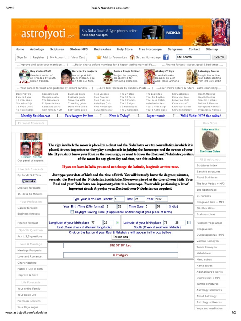 Rasi Nakshatra Calculator (Panchangam) / Free moon sign and birthstar calculator. Rasi Nakshatra Calculator (Panchangam) / It attempts to find your birth.